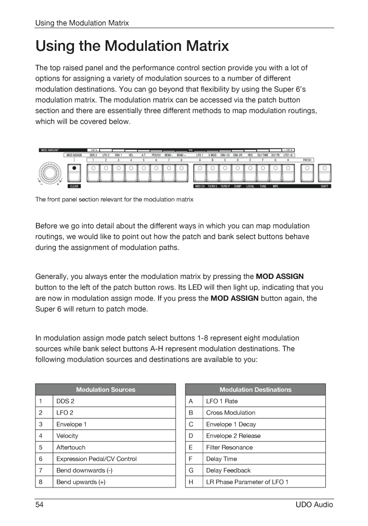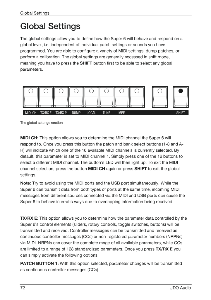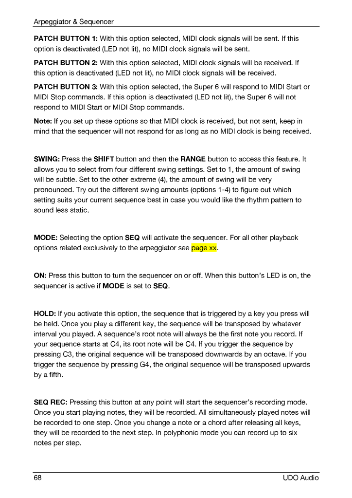 As part of the evolution of the Super 6 synthesizer by UDO Audio, I was responsible for writing and organizing the user manual for the companyโs first hardware instrument. The manual was not only supposed to communicate and explain the synthesizerโs features to musicians. It was also conceptualized to serve as the guide for the creation of the instrumentโs software to ensure a user-centered focus throughout the development process. The latter also involved the ideation of not yet conceived features and functionality.